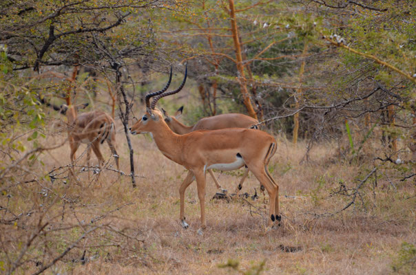 Das Schöne an diesem Nationalpark ist, dass er absolut nicht überlaufen ist. Die meiste Zeit ist man ganz alleine mitten im Busch unterwegs. Und selbst wenn mal ein paar Jeeps an der gleichen Stelle stehen, es wird trotzdem auf genügend Abstand zu den Tieren und auf einen respektvollen Umgang miteinander geachtet, um die Tiere möglichst nicht zu stören.